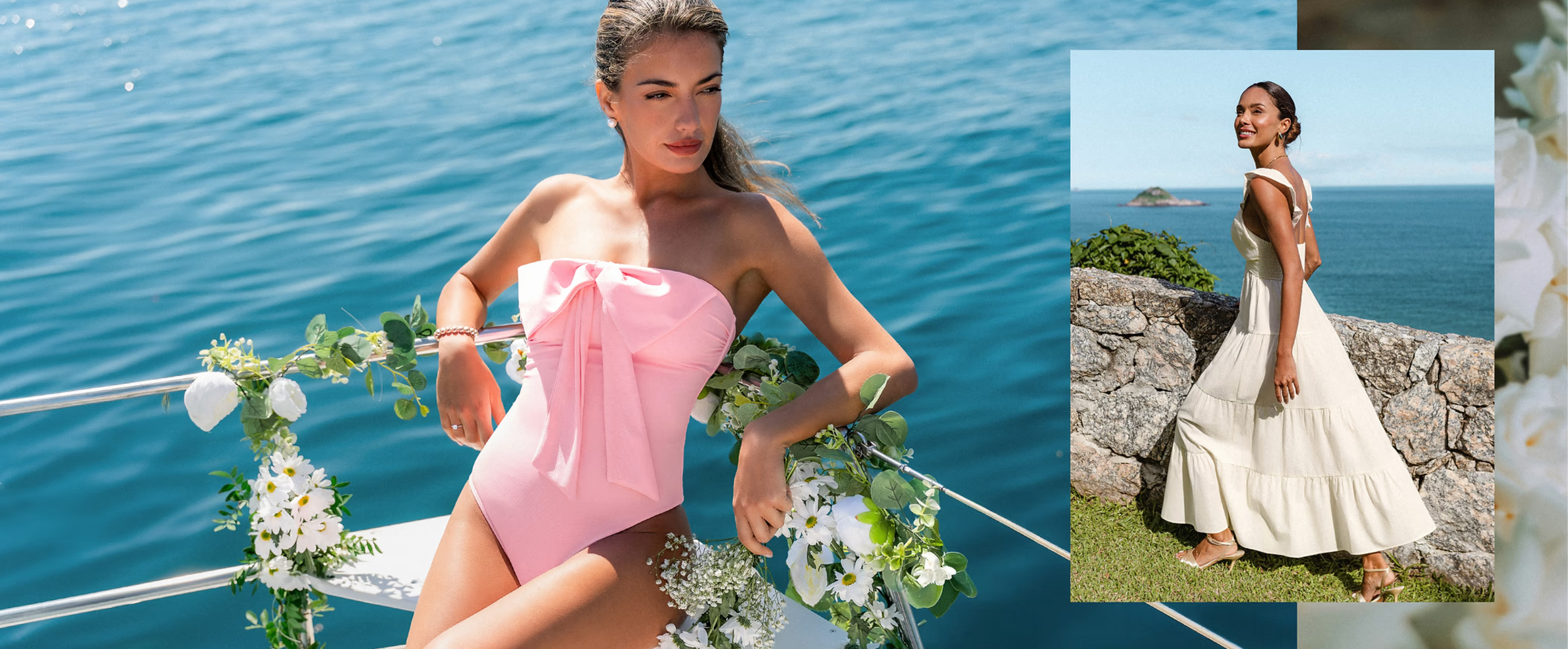Tropical Bandeau Adjustable Side One Piece Swimsuit